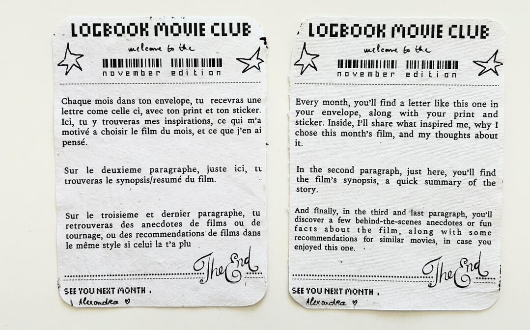 Plus!! You no longer need to scroll for hours: every month, a unique film recommendation is waiting for you in your mailbox, packaged with care by me like a postcard from a friend. <3